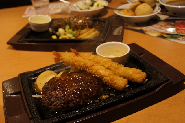 ハンバーグが来るまでにサラダバーで、サラダとかスープとかパンとか欲張って食べてたらお腹いっぱいになってしまいましたよ(笑)