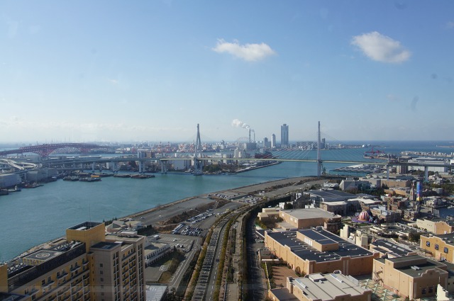 夜はわからなかったけど、海遊館も見えるし、橋は昼間の方が綺麗に見えますね。