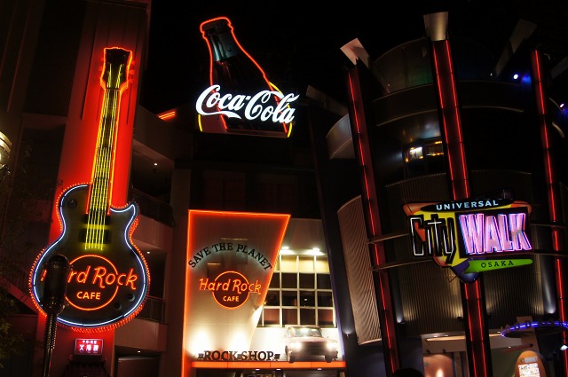 でも、ユニバーサルシティ駅からUSJに行くまでにある、ユニバーサルシティウォークは夜遅くまで楽しめます。