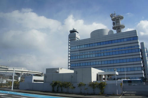 ターミナルの近くには空港警察↑もあります。後ろに写ってる背の高い建物は管制塔ですね。
