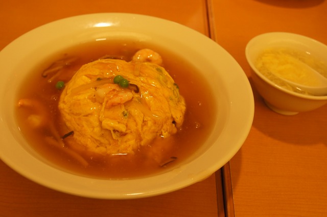 注文したのは天津飯。写真で見ると、小ぶりに見えるんですが結構ボリュームあります。