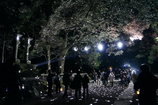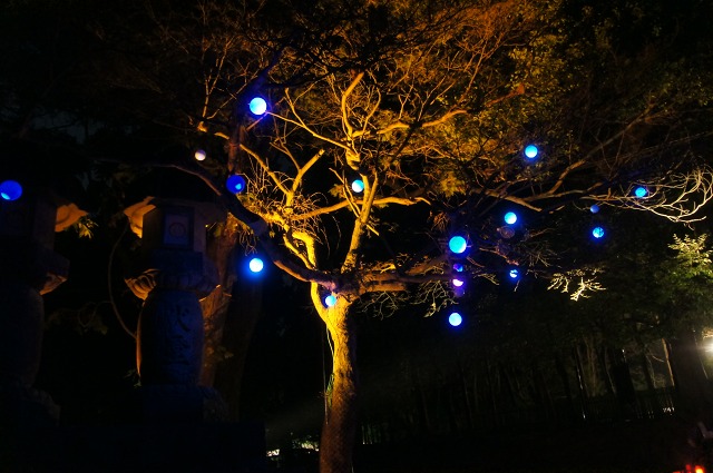 いたるところでイルミネーションを楽しむことができるのですが、春日大社の参道ではミラーボールがキラキラ光る演出がありました。