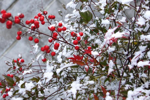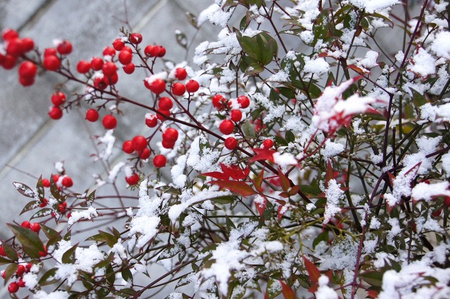 先日、雪が降った時に撮った南天の木。