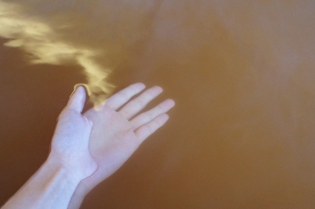 すくってよく見てみると、お湯の中に茶色のつぶつぶがいっぱい浮かんでます。