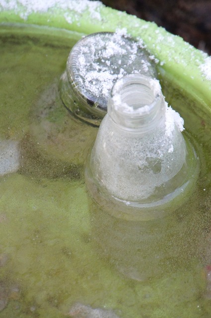 ガチガチに凍ってますね。…それにしても、なんでビンが放置されてるんだろう??