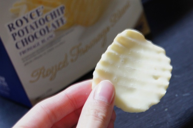 最初にチョコの濃厚な甘味がきて、つぎにポテチのじゃがいもの風味がふわっときます。