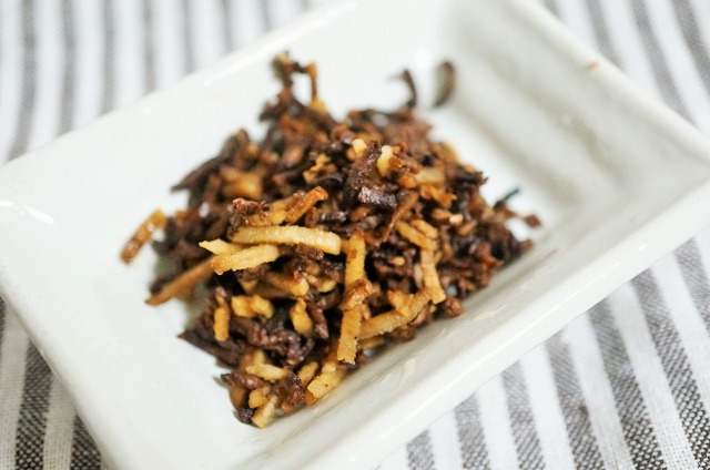 そのままだとただのゴボウなので、麺つゆと砂糖でさっと炒めてみましたよ。