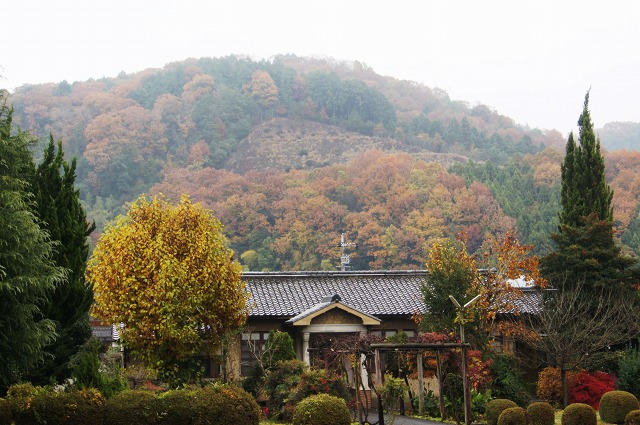 背景でボケているのは紅葉した山々です。