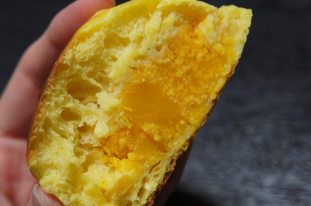 パカっと割ると、中にはカボチャ餡が入ってます。