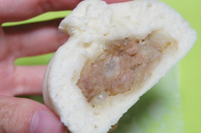 ぱっくり割ってみるとジューシーな具がみっちりと詰まってます。