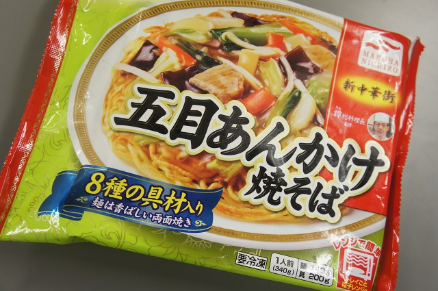 こちらは仕事場で食べた夜食。マルハニチロの「五目あんかけ焼きそば」
