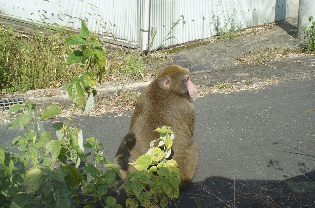 すぐ側は民家。…しかも、猿のいるとこは歩道ですよ。