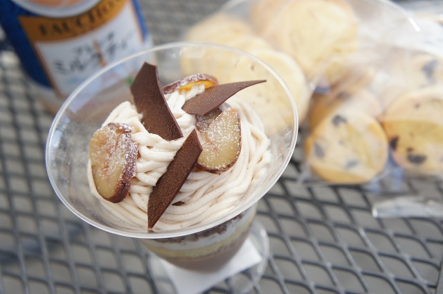 ショコラモンブラン(350円)を外のバルコニーで缶ミルクティーと共に頂きました。
