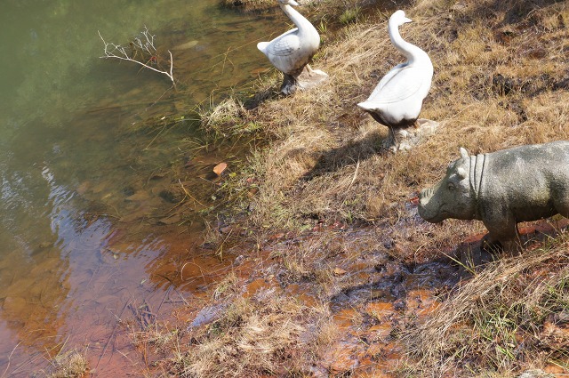 途中、大きな池があって石の動物たちが水際にいっぱいいましたよ。