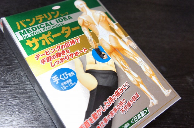 かといってテーピングしないわけにもいかないので、思い切ってバンテリンの手首用サポーターを買いました。
