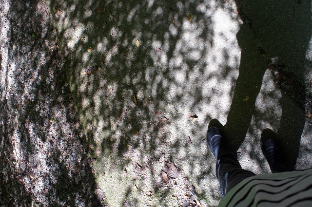 滝からの帰り道、地面を見ると木漏れ日が綺麗で、パシャリと撮影。