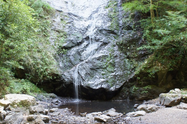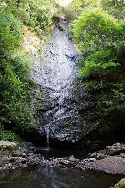 この滝の上には池があって、田んぼに水を流している間は滝の水量は少なくなるんですが、