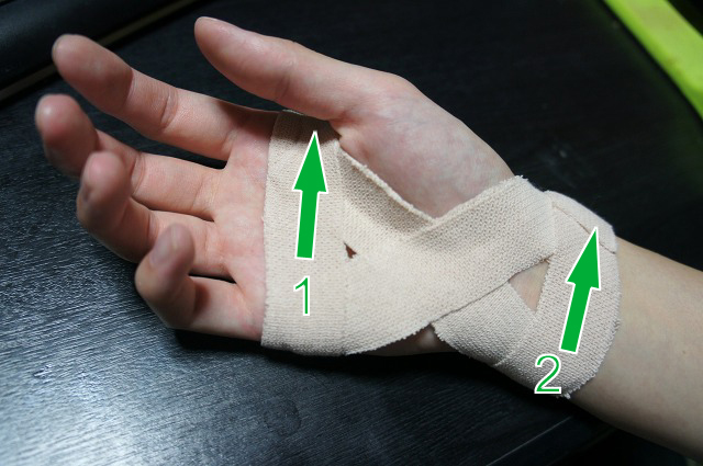 まず1と2の位置にひと巻きします。巻きはじめと巻き終わりは、手の甲側にした方が剥がれにくいですよ。
