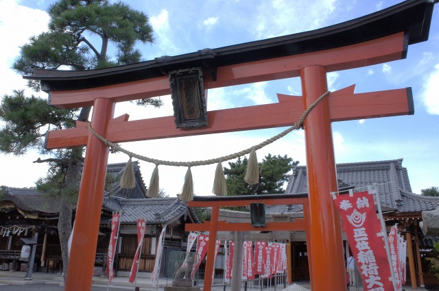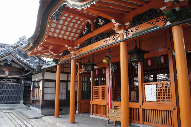 隣には朱色の稲荷が美しい出世稲荷があります。