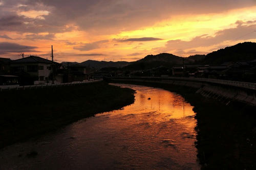 ここは川がちょうど西へ向かって流れているので、川面が綺麗に赤く染まるんですよ。