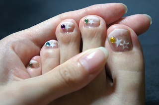仕事場では、あんまり派手な爪はできないので、手はこれで終了。