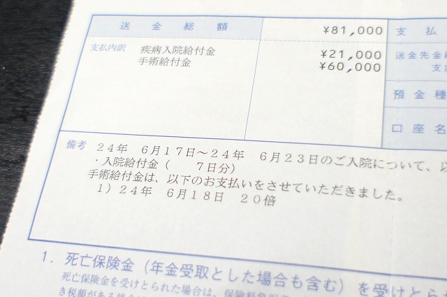 前回、入院+手術で合計8万7301円かかったというお話をしたのですが、保険会社に申し込んだ保険金が先日振り込まれました。
