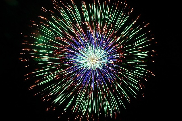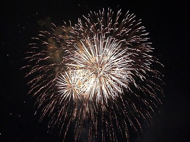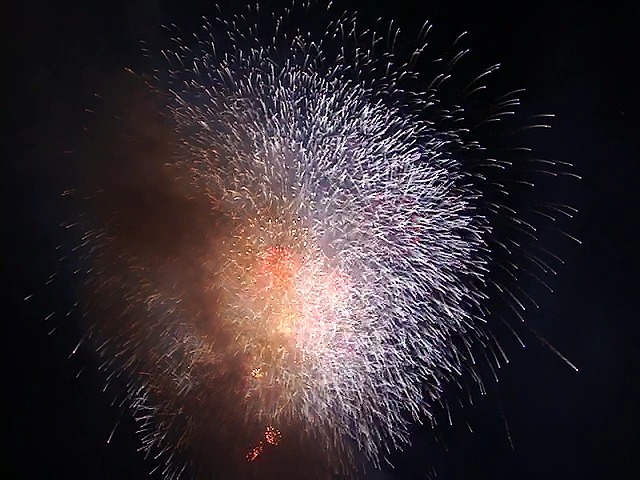 中心がピカピカまぶしい!!!色つきの花火も混ざっててすっごい綺麗!!