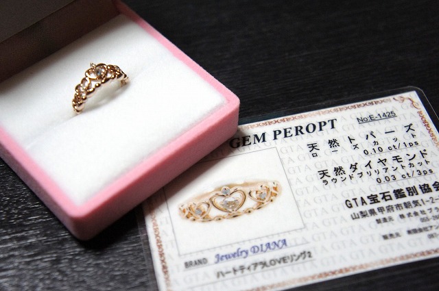 「ハートティアラLOVEリング2」という、天然トパーズとダイヤモンドがちりばめられた可愛いリングが当たりました。