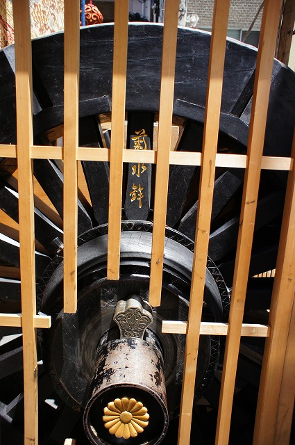 シンプルなものが多い中、この鉾車には菊のマークや名前入りだったりするんですね。