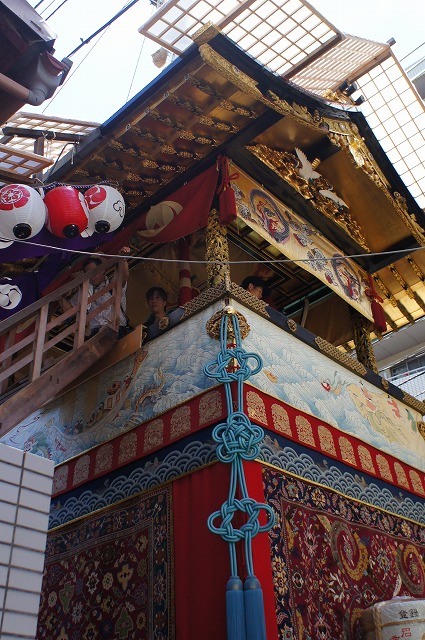 大通りに置かれている鉾に比べて、周りはそんなに混んでなかったので、じっくり足元を拝見すると