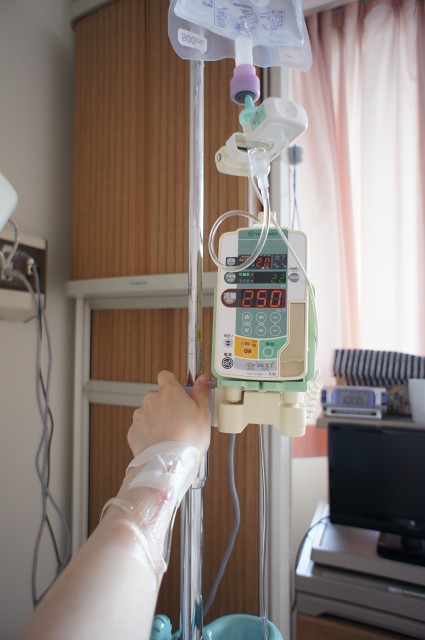 最初は点滴終わると看護師さんがつけかえに来てくれたんですが、