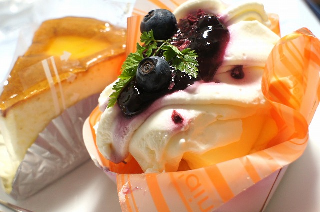 ブルーベリーのレアチーズと、スフレチーズケーキ。
