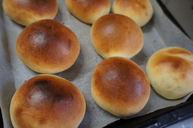 うちのオーブン焼きむらがあって、いつも右手前のパンだけ焼き目が薄くなっちゃいます。