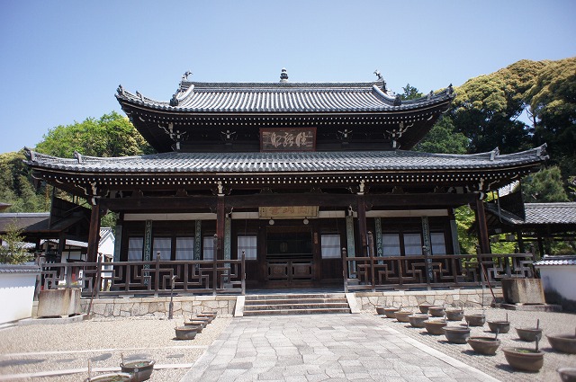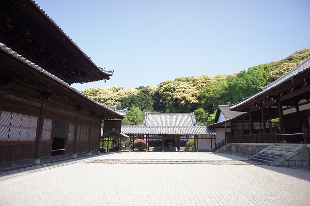 大雄宝殿~法堂を結ぶお庭はとてもきれいに整えられていて、建物と後ろのお山と合わせると、とても絵になる風景です。