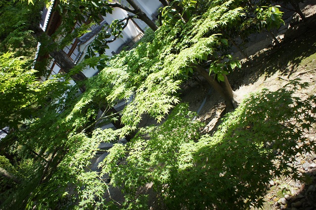 西側のお堂に向かう途中、きれいな新緑の紅葉を発見!