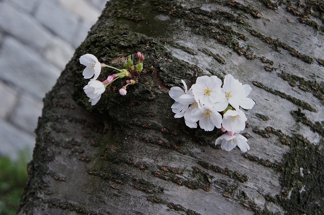 ついつい上の枝にばっか目が行ってしまうのですが、幹の方にも咲いてました。