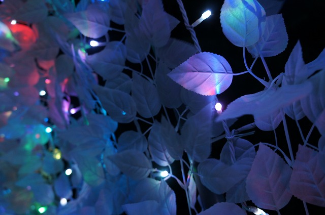 手前の一面の電球も、そのたびに目まぐるしく色が変わります。