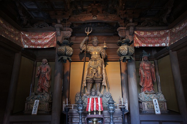 観音堂には金の観音様がいっぱいあるんですが、毘沙門堂には立派な像が3体。