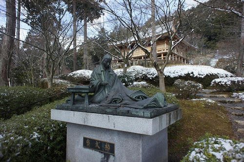 山の上のほうには紫式部の像もありました。