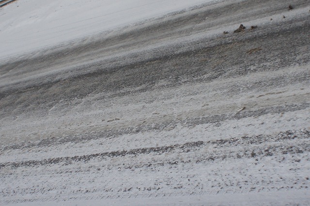 翌日はこんな感じで、雪は積もってないんですが凍結道が多くて大変。