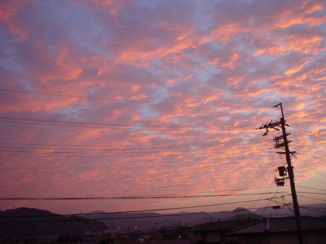 ふと空を見ると雲の隙間から朝日がさしてオレンジ色に光ってました。