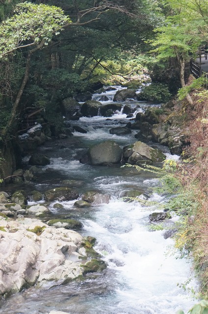 この先に落差30mの「大滝」があるのですが、遊歩道からは見えずどこかの露天風呂から見えるとか情報はあったのですが、そこまでして見るのもなぁ・・・ってことでここで引き上げました。
