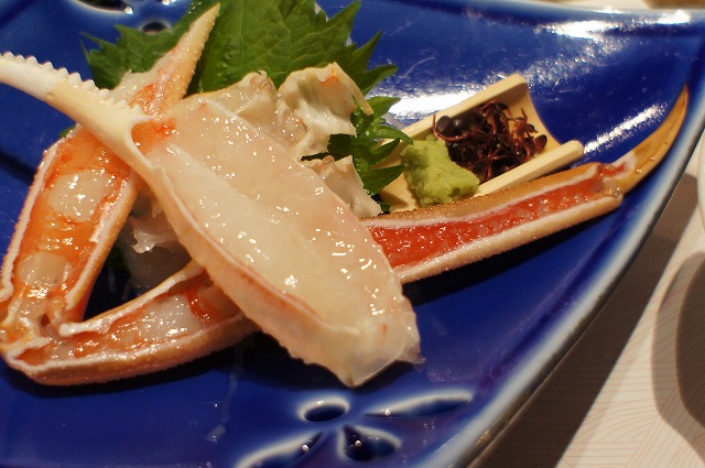 かに刺身ですね。あまくておいしいんですが、私は生より茹でたり焼いたりした方が好き。