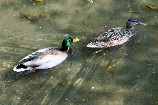 鴨川沿いを歩いて向かう途中に可愛いマガモのカップルが。
