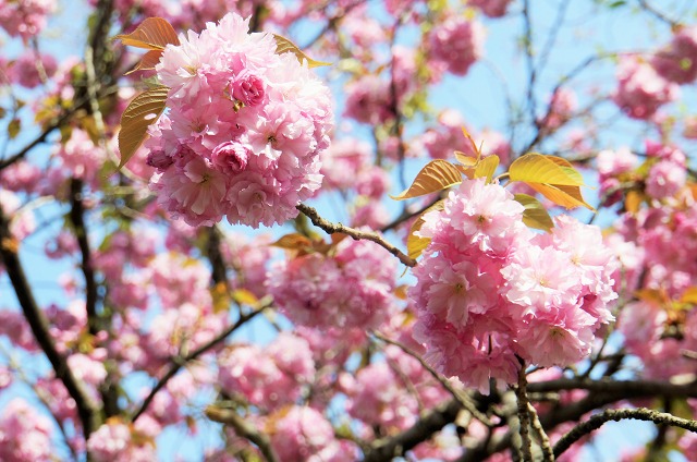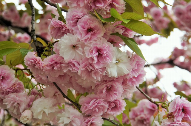 八重桜は葉っぱも綺麗な色で、ブーケがいっぱいあるみたいに見えて好きです。