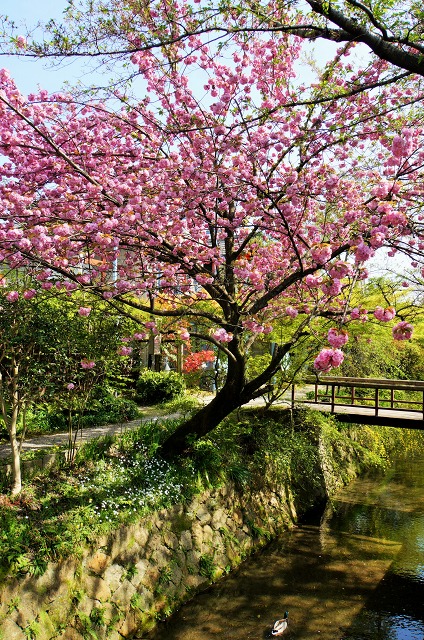 哲学の道に行ってみると、桜は散ってしまったのが多くて、人はそんなに多くなかったです。