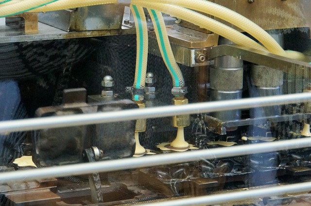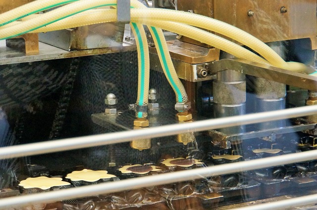 ガッチャンガッチャンっと動きながら、もみじ饅頭が出来上がっていきますよ。