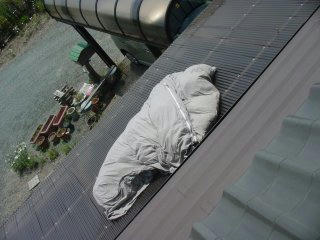 屋根瓦は夏場は熱がこもって大変なことになりますが、布団干すにはぴったりなんですよね。