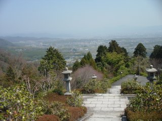 心臓破りの急傾斜な坂、それに階段を上った先には薬師堂とけいしょう殿があり、そこから京都の街並みを一望できます。