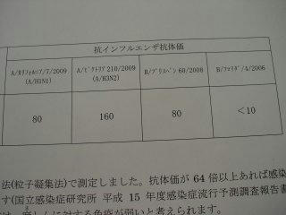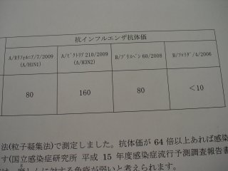 去年の9月ぐらいに、健康診断の精査で採血した時に「インフルエンザの抗体価を調べさせて下さい」と言われ、それからすっかり受けたことを忘れてましたが、今頃になって結果が返ってきました。
